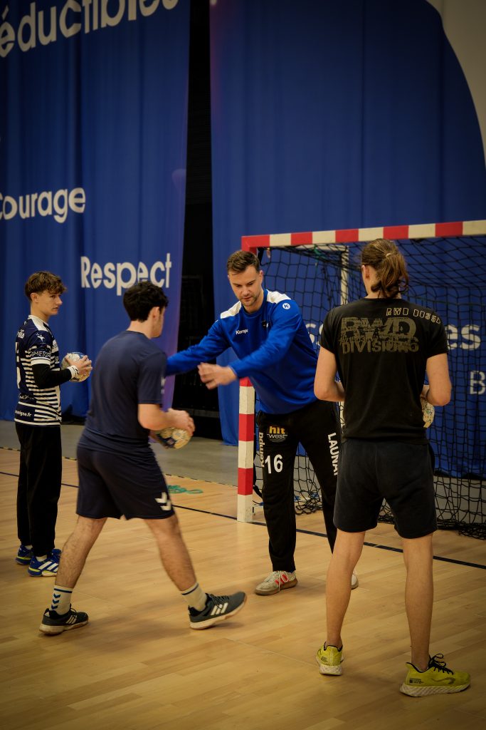 Nos 3 apprenants qui ont eu l’opportunitĂ© de participer Ă cette sĂ©ance font ou ont tous fait du handball en club. Ce moment a Ă©tĂ© symbolique pour leur expĂ©rience et le dĂ©veloppement de leur passion. Ils ont fait partie intĂ©grante d’un entrainement gardien professionnel et ont pu se challenger avec diffĂ©rents dĂ©fis : pĂ©nalty, crossbar challenge…